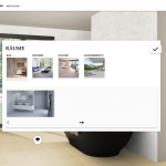 Natürliche Produktdarstellung in Raumfotos, intuitive Produktauswahl – Ein Mausklick auf den Boden oder die Wand und die Liste der passenden Fliesen erscheint. Per Mausklick tauschen Sie die Fliesen in der Raumfläche aus und kombinieren verschiedene Farben, Verlegemuster und Größen in den konfigurierbaren Flächen.